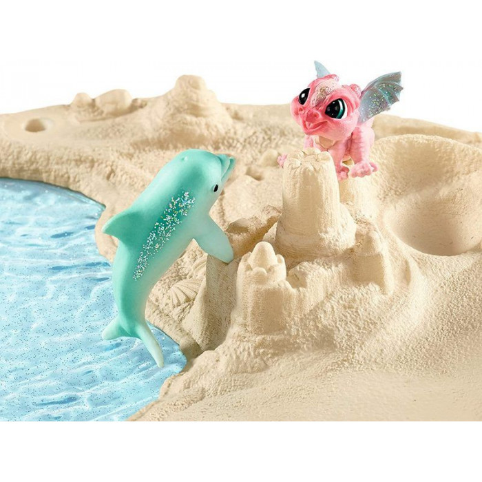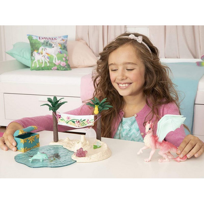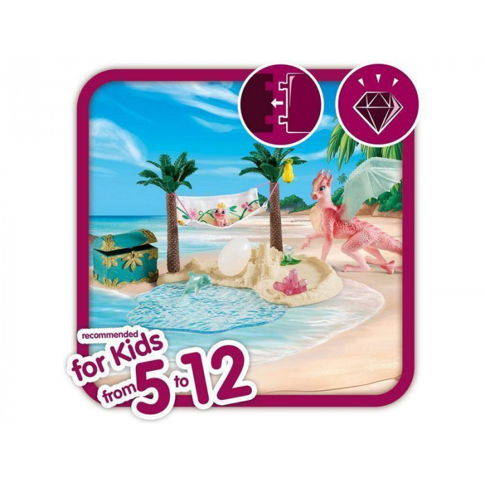 Волшебный остров драконов совсем не большой, но создать его можешь только ты. На нем так интересно. Мама-дракон, милый малыш-дракон, малыш-дельфин могут безмятежно отдыхать и играть вместе с тобой. Малыш-дракон может качаться в гамаке, удобно устраиваться на спине своей мамы или кататься в яйце с песочной горки. Мама-драконом в это время охраняет сундук с волшебным кристаллом драконов и строит песочные замки. Кто знает, может, к вам заглянет на своей карете-ракушке Принцесса-русалочка Изабель вместе со своими подругами Габриэллой, Аннабель и Мишель. В любом случае скучать будет некогда.