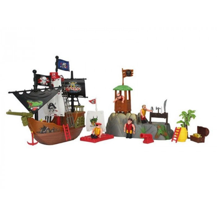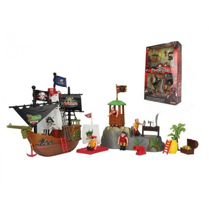 Набор миниатюрных фигурок пиратов с кораблем и с широким ассортиментом аксессуаров. Набор позволяет отправиться в удивительное морское приключение на настоящем пиратском корабле. В нем вы найдете дополнительные детали и аксессуары пиратского снаряжения: пушка, смотровая вышка, лестницы, плот и даже сокровища. На корабле развиваются пиратские флаги. Самое время отправиться в плавание.