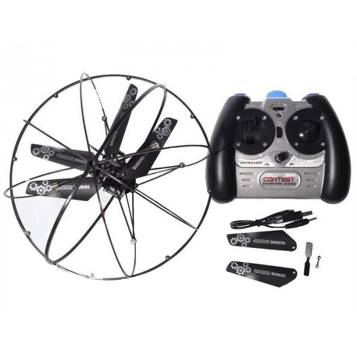 UFO ROBOTIC - это вертолет с лопастями внутри. Лопасти устройства спрятан под сферообразный каркас. Благодаря такому решению Вам теперь будет не страшно удариться лопастью при запуске и повредит ее. Хотя для самых проворных в комплекте поставляется две запасные лопасти и пропеллер.
