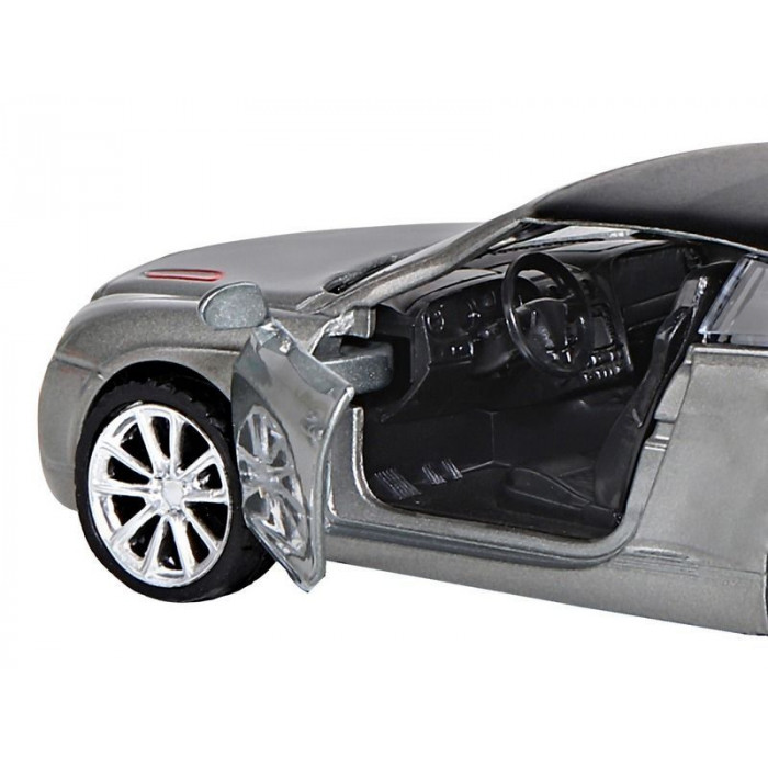 Модель выполнена в масштабе 1:43, у нее открываются двери и вращаются резиновые колеса. Игрушка оснащена инерционным механизмом - если откатить автомобиль немного назад и отпустить, он поедет вперед.