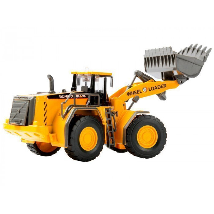 Модель выполнена в масштабе 1:50, имеет подвижные элементы, у нее поднимается и опускается ковш, при нажатии на корпус загорается свет фар и включается звук. Сверху на двигателе открывается лючок, что сделает игру более реалистичной и интересной.