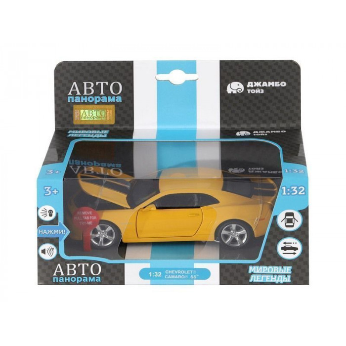 Описание Машина "АВТОПАНОРАМА" Chevrolet Camaro SS, желтый, 1/32, свет, звук, инерция, в/к 17,5*13,5*9 см