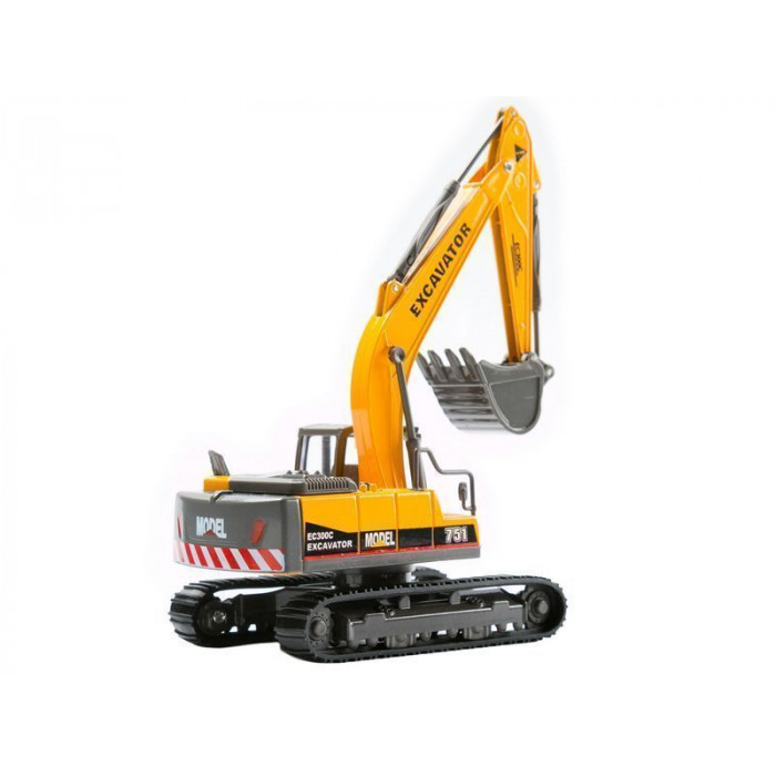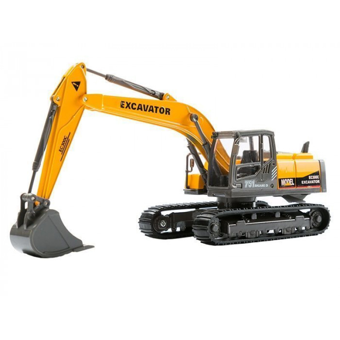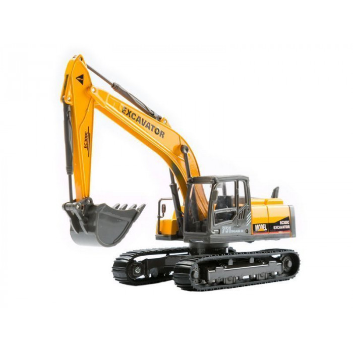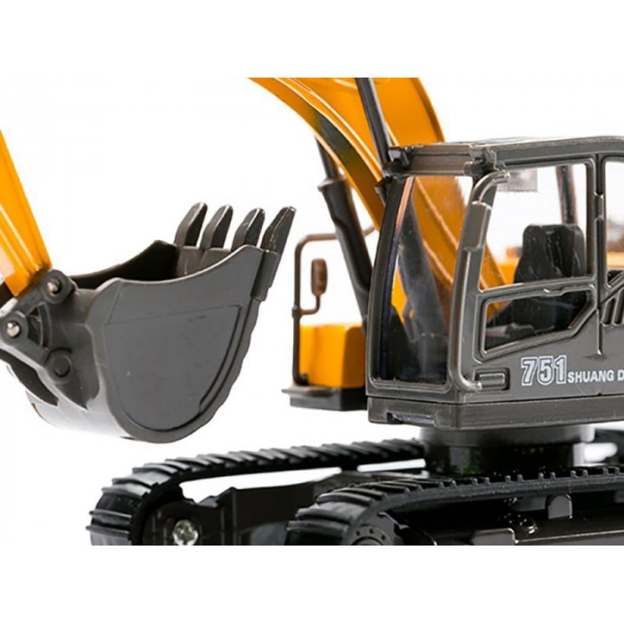 Модель выполнена в масштабе 1:50, имеет подвижные элементы: у нее поднимается и опускается ковш, двигаются гусеницы, а при нажатии на кнопку, расположенную на корпусе, загорается свет фар и включается звук. Сверху на двигателе открывается лючок, что сделает игру более реалистичной и интересной.