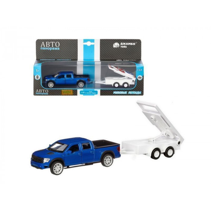 Основные характеристики Машина "АВТОПАНОРАМА" Ford F-150 c прицепом с дорожными знаками, 1/43, инерция, в/к
