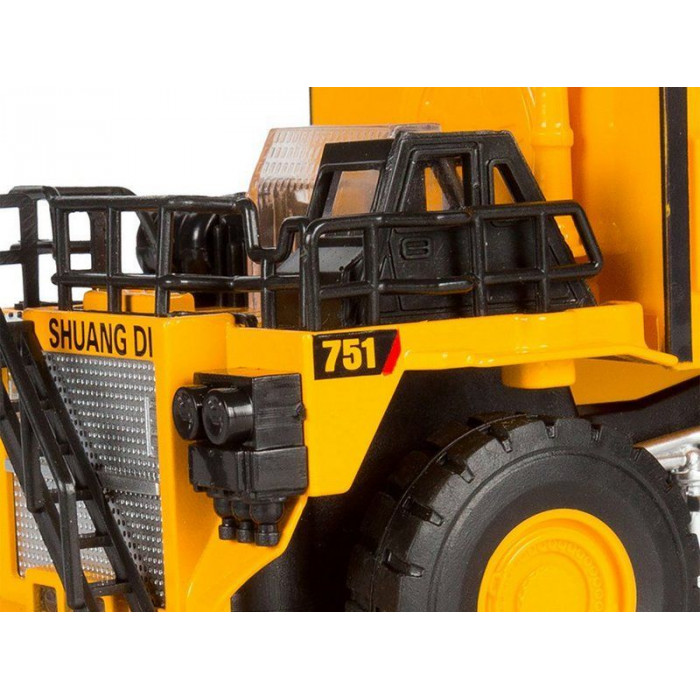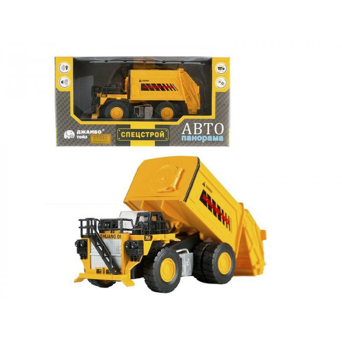 Описание Машина "АВТОПАНОРАМА" КАРЬЕРНЫЙ МУСОРОВОЗ, желтый, 1/50, свет, звук, в/к 25*10*13 см