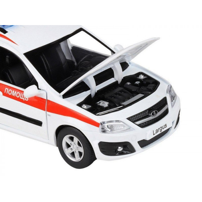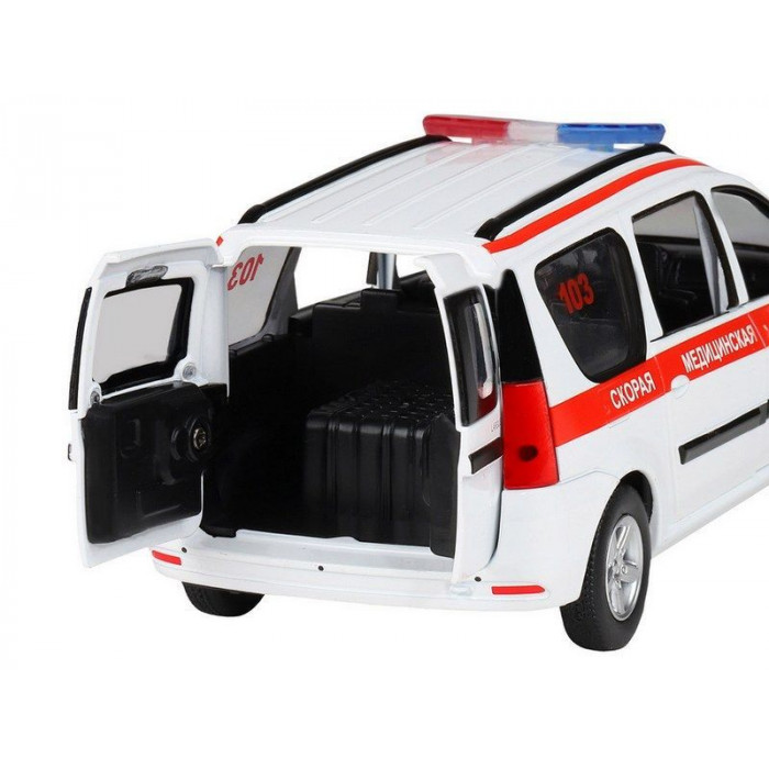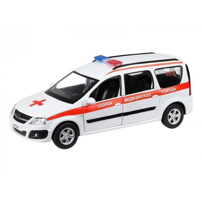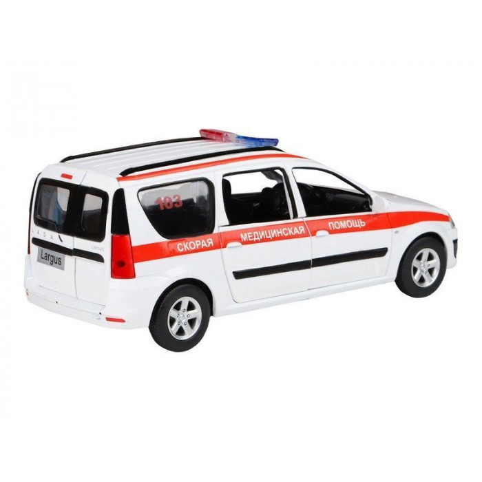 Металлическая лицензионная машинка LADA LARGUS "Скорая Помощь" - уменьшенная копия настоящего просторного универсала со специальной раскраской. Если помощь требуется любимой игрушке, нужно как можно скорее примчаться на вызов вместе с LADA LARGUS "Скорая Помощь". Машинка прекрасно дополнит игрушечный автопарк спецтранспорта, с ней можно создавать множество увлекательных игровых сюжетов, полных приключений.