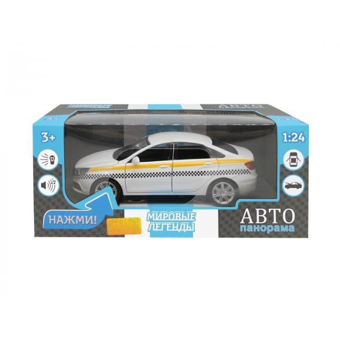 Вопросы и ответы (FAQ) Машина "АВТОПАНОРАМА" LADA VESTA "ТАКСИ" белый, 1/24, свет, звук, инерция, в/к 24,5*12,5*10,5 см