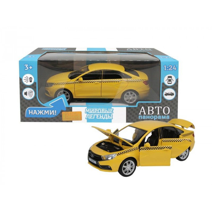Вопросы и ответы (FAQ) Машина "АВТОПАНОРАМА" LADA VESTA "ТАКСИ" желтый, 1/24, свет, звук, инерция, в/к 24,5*12,5*10,5 см