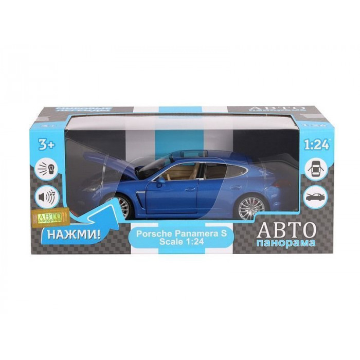 Описание Машина "АВТОПАНОРАМА" Porsche Panamera S, синий, 1/24, свет, звук, в/к 24,5*12,5*10,5 см