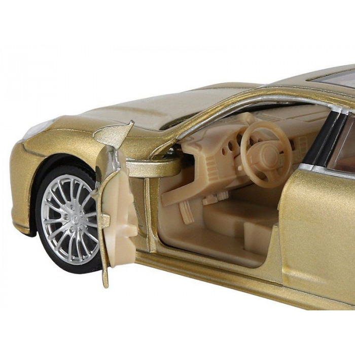 Модель выполнена в масштабе 1:32, у нее открываются передние двери. Колеса с резиновыми покрышками и литыми дисками, детально проработанный салон, люк в крыше, прозрачные окна, фары - всё как у настоящего автомобиля.