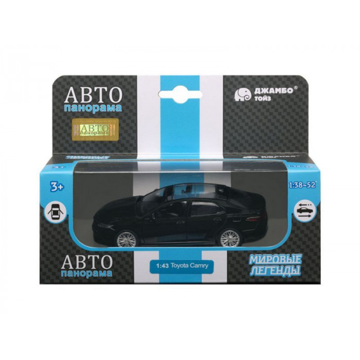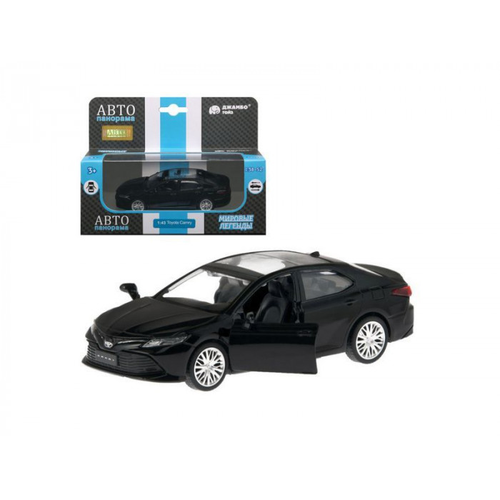Описание Машина "АВТОПАНОРАМА" Toyota Camry, черный, 1/43, откр. двери, инерция, в/к 17,5*12,5*6,5 см