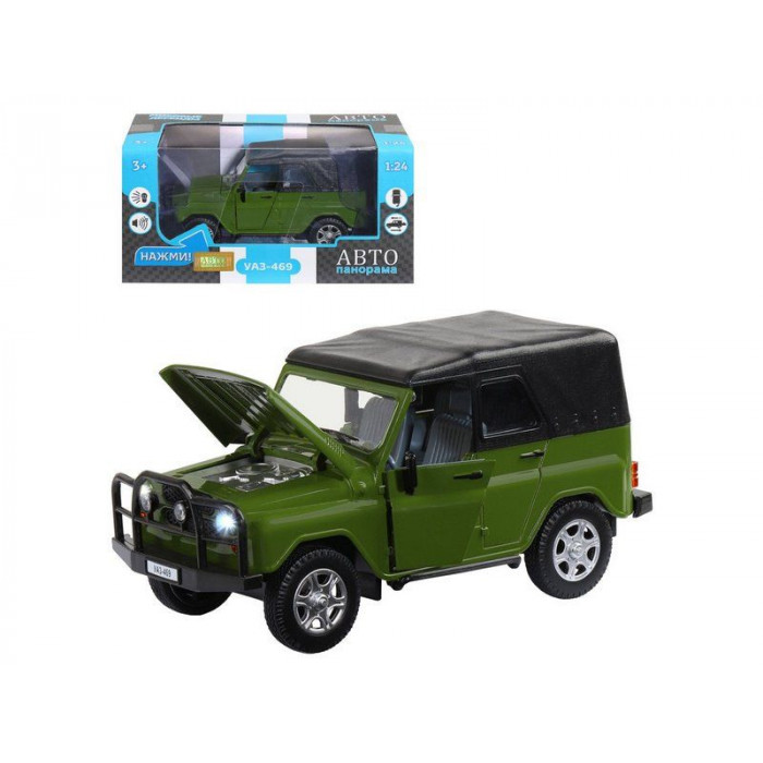Вопросы и ответы (FAQ) Машина "АВТОПАНОРАМА" УАЗ-469, хаки, 1/24, свет, звук, инерция, тент, в/к 22*12*11