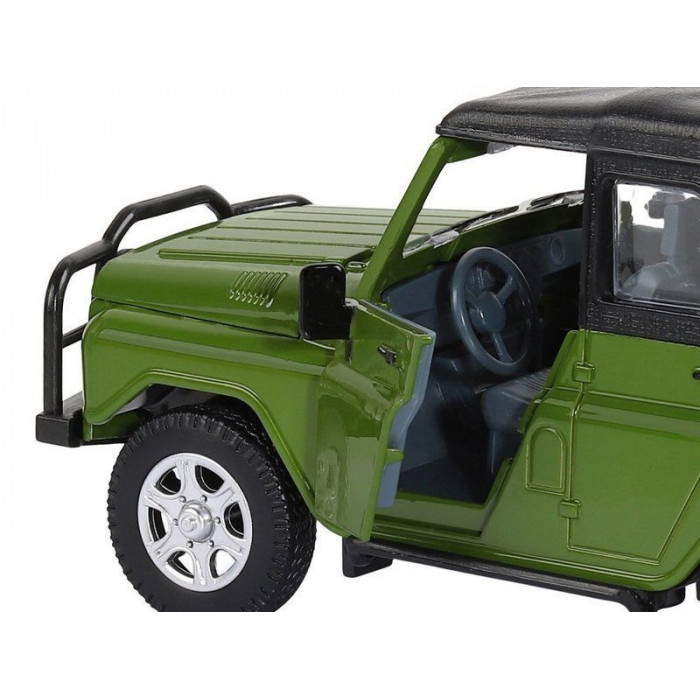 Металлическая лицензионная машинка УАЗ-469 с легко узнаваемым дизайном кузова легендарного "Уазика" - уменьшенная копия известного внедорожника, который можно эксплуатировать практически в любых условиях. Ей покорится любое бездорожье. Машинка прекрасно дополнит игрушечный автопарк и сделает игру более увлекательной.