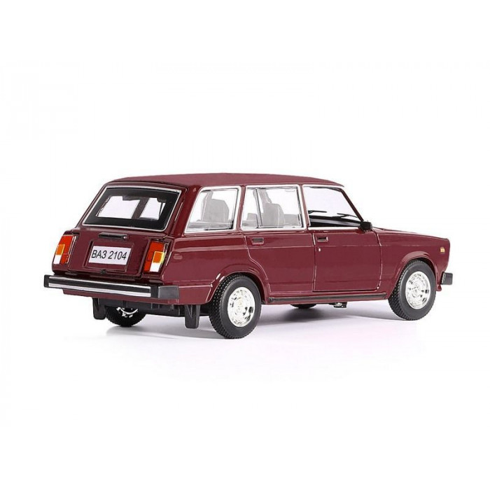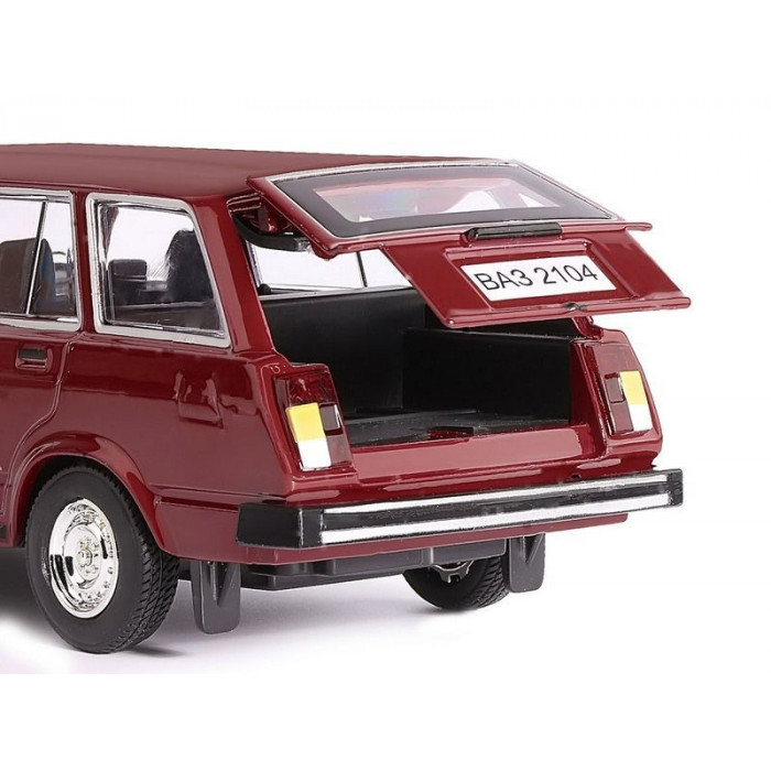Металлическая машинка ВАЗ-2104 - сделана в стиле популярного советского автомобиля в кузове универсал с увеличенным багажным отсеком, позволявшим перевозить крупные предметы. Машинка выпущена известной компанией по производству игрушек Автопанорама. Особенность коллекции в том, что все модели изготовлены по лицензии именитых автопроизводителей.