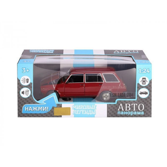 Основные характеристики Машина "АВТОПАНОРАМА" ВАЗ 2104, 1/24, бордовый, инерция, в/к 24,5*12,5*10,5 см
