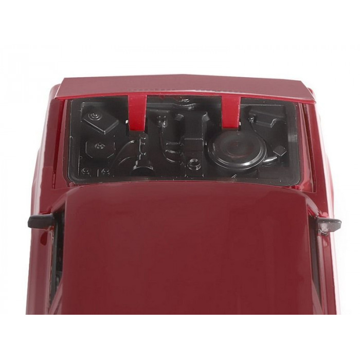 Модель выполнена в масштабе 1:24, у нее открываются передние двери, капот и багажник. Игрушка оснащена инерционным механизмом - если откатить автомобиль немного назад и отпустить, он поедет вперед. При нажатии на корпус и при открытии дверей начинают светиться фары и включается звук.