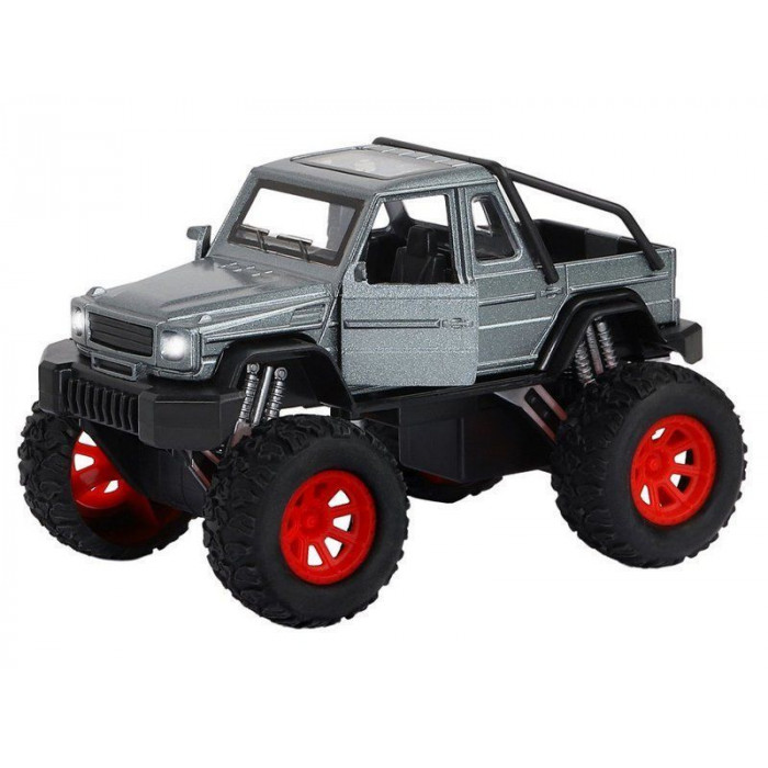 Модель выполнена в масштабе 1:32. Передние двери открываются, в кабину можно посадить игрушечного водителя, а в багажник погрузить небольшие предметы, придумывая новые игровые сюжеты. Благодаря независимой пружинной подвеске, машинку можно катать практически по любой поверхности, преодолевая сложные препятствия. Мощные колеса с резиновыми покрышками и рельефным рисунком, дворники на лобовом стекле, детально проработанный салон, люк в крыше, фары, усиленные бамперы - всё как у настоящего джипа.