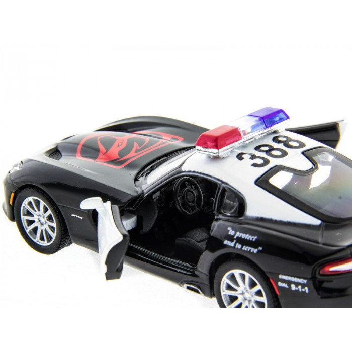 Машинка металлическая, поэтому ей не страшны незначительные столкновения. Двери машинки открываются, что не может не радовать. Данная машинка SRT Viper имеет вариант расцветки Police