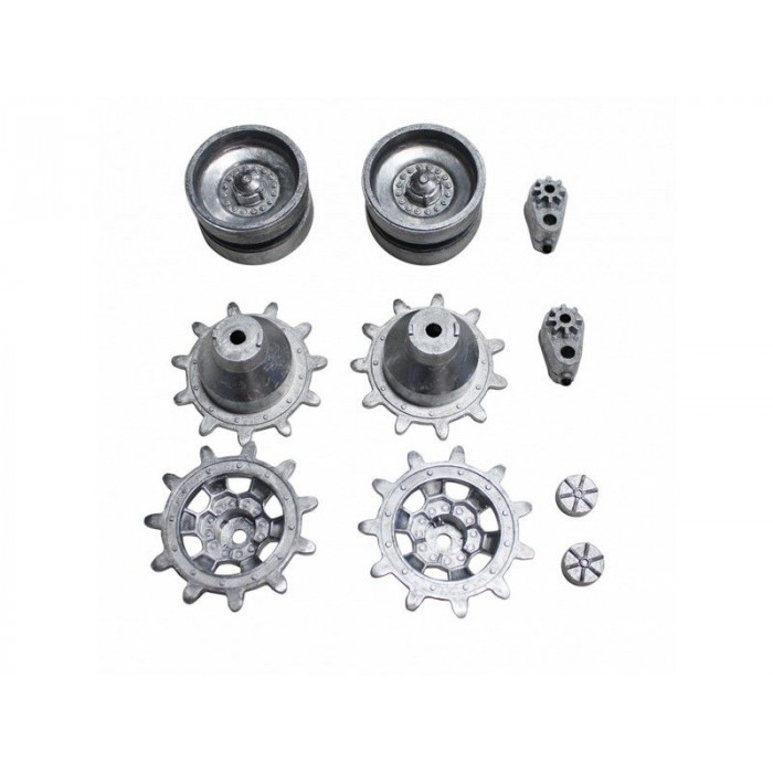 Комплект: ведущая звездочка, ленивец, опорные катки для радиоуправляемых танков Taigen и HengLong Leopard 2 A6 (3889) масштаба 1/16.