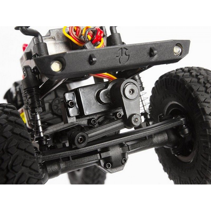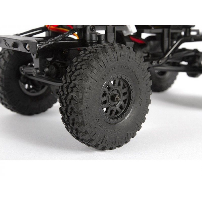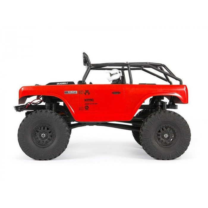 С двигателем 180 и батареей LiPo SCX24 Deadbolt отлично показывает себя на трассе. Модель имеет укороченный кузов, выштамповку на капоте и литой каркас безопасности со светодиодной балкой. Внутри установлена фигурка водителя. Реалистичный внешний вид завершают лицензированные колеса KMC XD229 Machete Crawl с шинами Nitto Trail Grappler.
