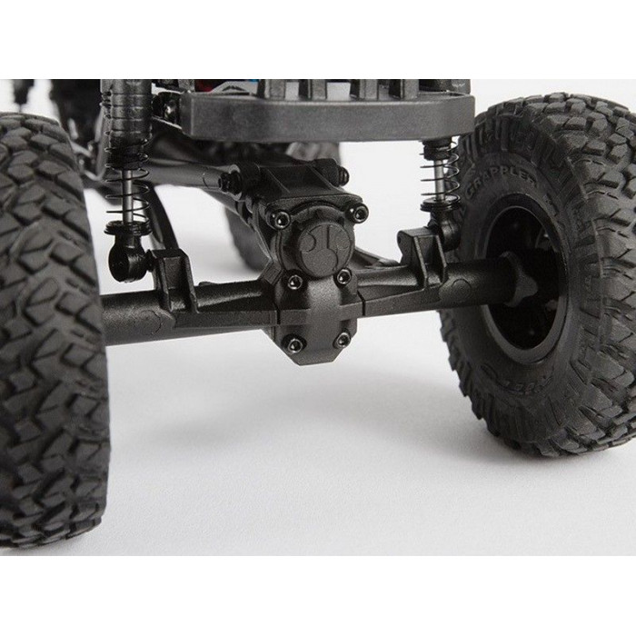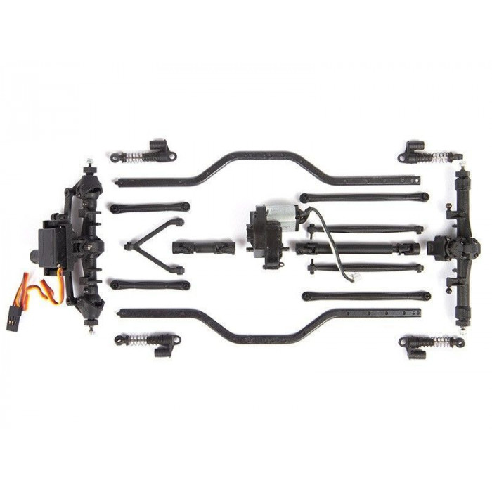 Реалистичное шасси оснащено 3-рычажной передней и 4-рычажной задней подвесками. Сочетание пружинно-гидравлических амортизаторов и прочных пластиковых опор подвески не уступает крупным моделям Axial. Дорожный просвет увеличен за счет осей с червячными шестернями, а низкое передаточное соотношение уменьшает эффект скручивания подвески (так называемый «карданный эффект»).