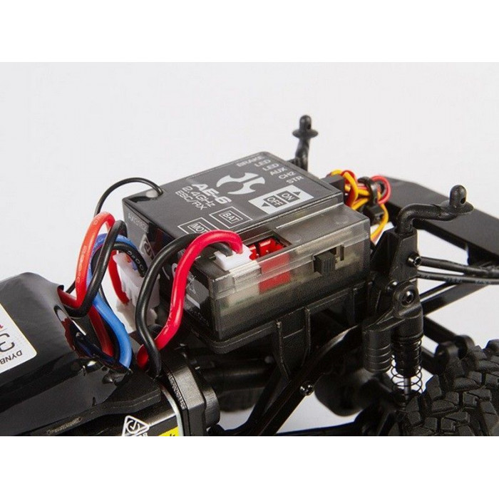 Кроме того, SCX24 Deadbolt на 100% готов к заезду сразу после покупки. В комплект входит все необходимое: собранный автомобиль, 2-канальный пульт управления Axial 2,4 ГГц с регулятором скорости и приемником в одном блоке, сервопривод, коллекторный электродвигатель Dynamite® 88T, батарея LiPo 350 мАч 2S 7,4 В, зарядное устройство USB для батарей LiPo и даже четыре батареи АА для передатчика.