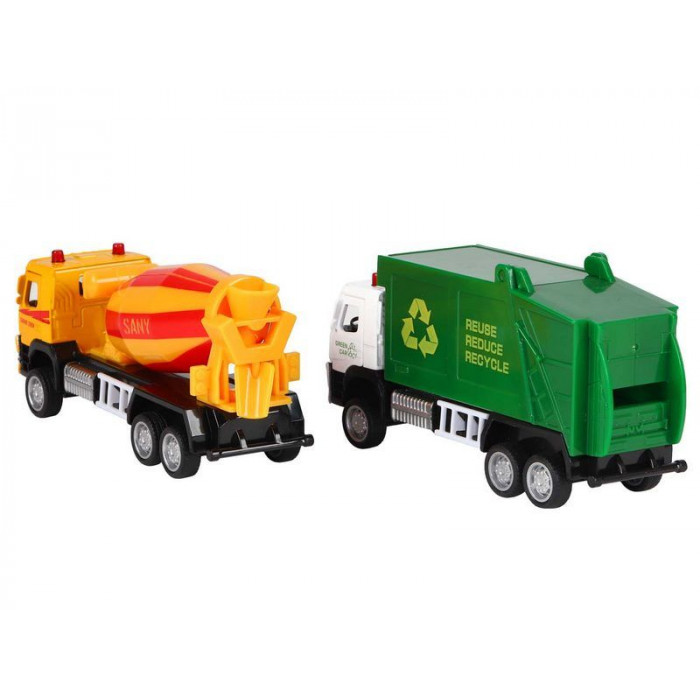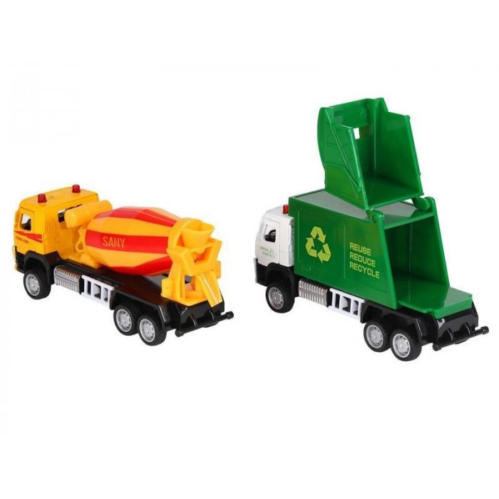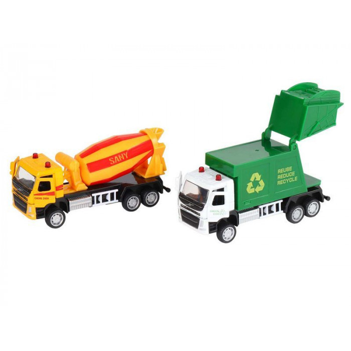Набор металлических машинок VOLVO FM "Городские службы" - масштабные модели настоящей спецтехники, с которыми юный автолюбитель сможет придумать множество сюжетов для игры, ведь это сразу 2 машинки: бетономешалка и мусоровоз.