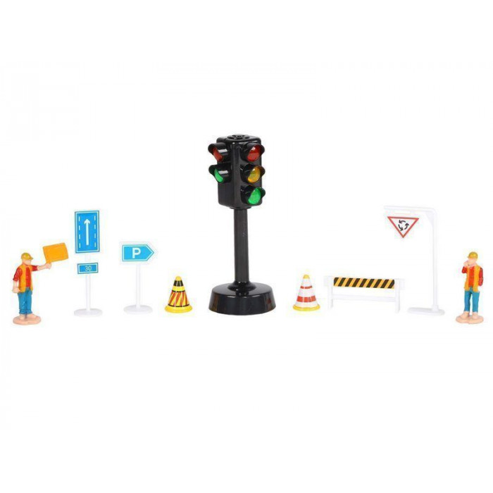 Благодаря тому, что в набор входят светофор со звуковыми и световыми эффектами, дорожные знаки и фигурки людей, ребенок сможет не просто играть, а также изучать правила дорожного движения.