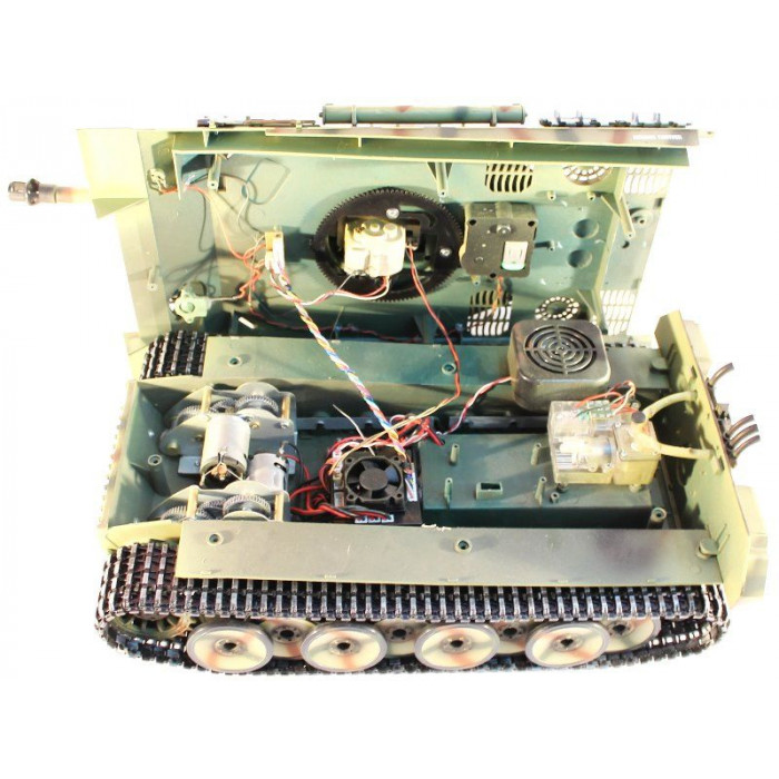 Радиоуправляемый танк PRO Panther "Пантера"  в масштабе 1:16 от компании Taigen - это полностью функциональная модель с большим количеством обновлений по сравнению со стандартным 1/16 танком. Наиболее заметным является фантастическая ручная роспись корпуса, что делает каждый танк оригинальным. Версия PRO отличается от обычной наличием металлической ходовой части (гусеницы, редукторы). Это делает танк не только более надежным и долговечным, но и придает ему неповторимый внешний вид, а также открывает простор для дальнейшей модернизации.