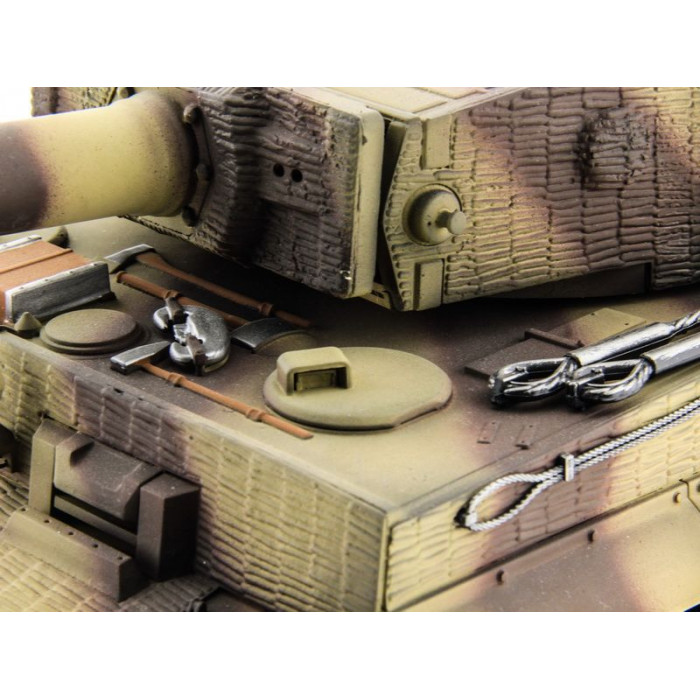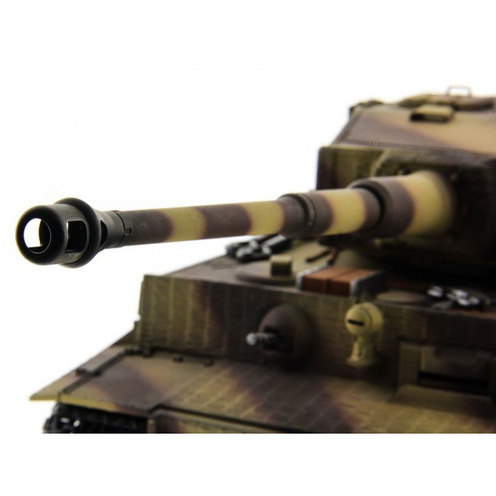 Немецкий тяжелый танк Tiger I (поздняя версия) был использован во Второй мировой войне в конце 1944 года для борьбы с советскими тяжелыми танками. Радиоуправляемый танк Tiger I в масштабе 1:16 от компании Taigen - это полностью функциональная модель, имеющая высокий уровень детализации и металлические компоненты. Наиболее заметным является шикарная ручная роспись корпуса, что делает каждый танк оригинальным. В последней версии Тигра включено множество новинок, которые делают танк не только более надежным и долговечным, но и придают ему неповторимый внешний вид, а также открывают простор для дальнейшей модернизации.