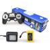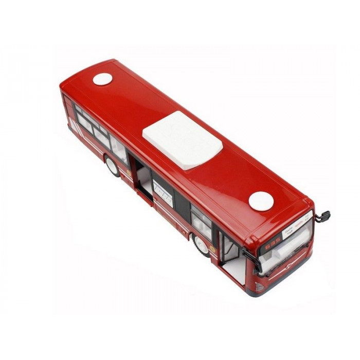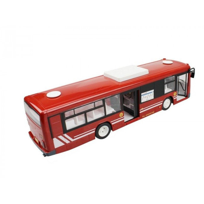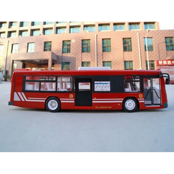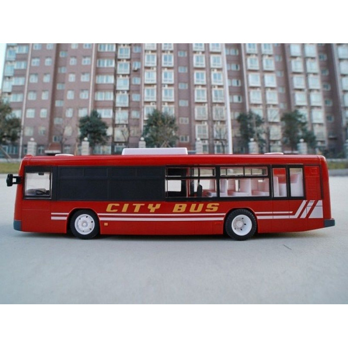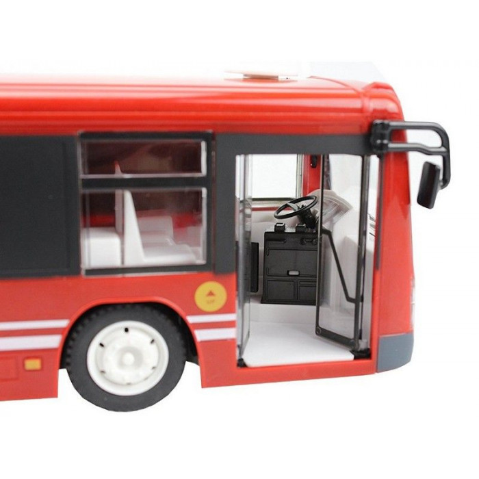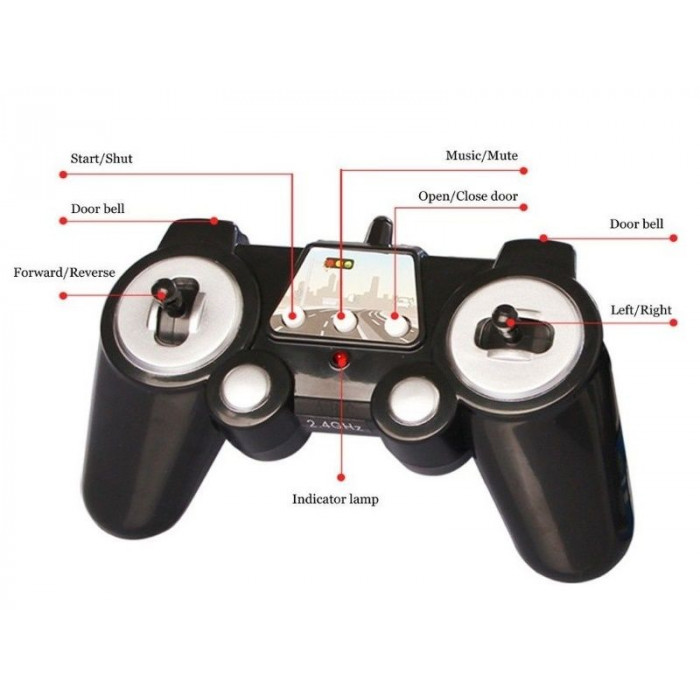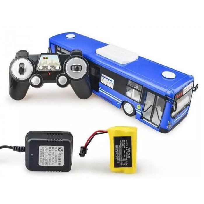 Антенна встроена в корпус. 4-х канальная радиоаппаратура работает на частоте 2,4Ггц и обеспечивает бесперебойную маневренность автомобиля влево, вправо, назад и вперед в радиусе 100 м. Звуковое сопровождение с регулируемой громкостью имитирует характерные звуки при остановке автобуса, открывании/закрывании дверей, сигнале. Так же предусмотрена подсветка фар и салона автобуса.