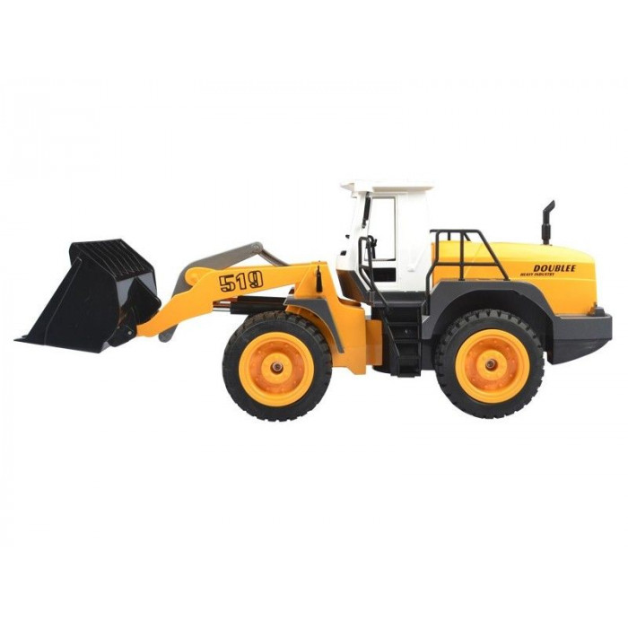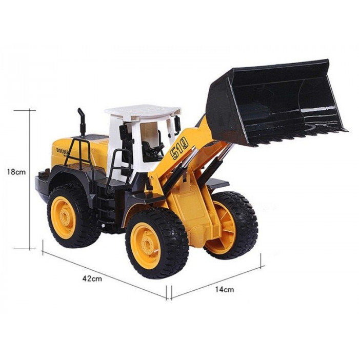 Модель способна поднимать незначительные тяжести за счёт своего ковша, который оборудован электроприводом. Бульдозер имеет строительный желтый стиль.