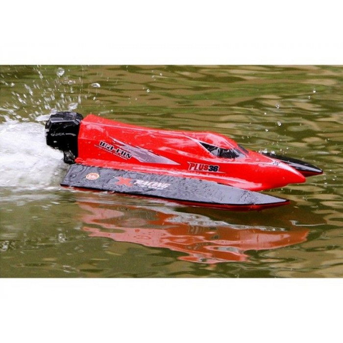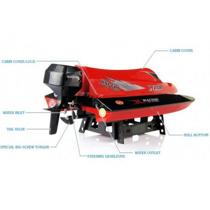 Высокоскоростная модель HuanQi 959 с водяным охлаждением. Мощный мотор обеспечивает хороший разгон и скорость до 30 км/ч. Есть индикация заряда батареи: при низком заряде, сработает специальная сигнализация, которая вернет катер к месту запуска.
