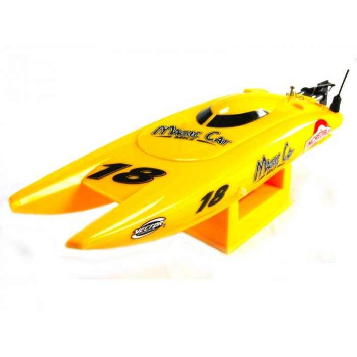 Полностью готовая минимодель радиоуправляемого катера Joysway Magic cat MK2. Катер комплектуется всем необходимым для запуска, включая аппаратуру управления на 2.4ГГц.
