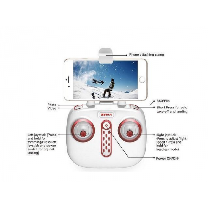 Функция автоматического взлета и посадки для безопасного взлета и приземления будет полезна новичкам. Syma X14WPRO имеет режим Headless Mode - квадрокоптер всегда будет следовать команде с пульта дистанционного управления независимо от того куда направлена его передняя часть. И еще одна нужная функция этой модели является - "план полета". На экране смартфона ставятся точки и полет осуществляется именно по ним.