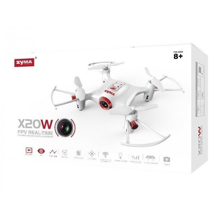 Syma X20W - это мини-квадрокоптер для обучения с барометрическим датчиком и с FPV трансляцией Wi-Fi, предназначен для полетов в помещении или на улице при отсутствии ветра.