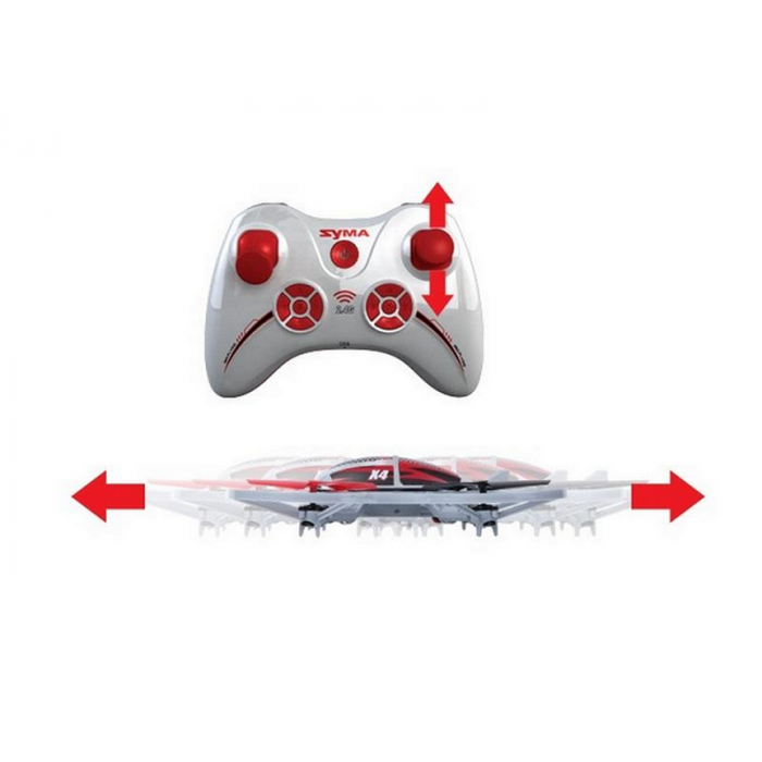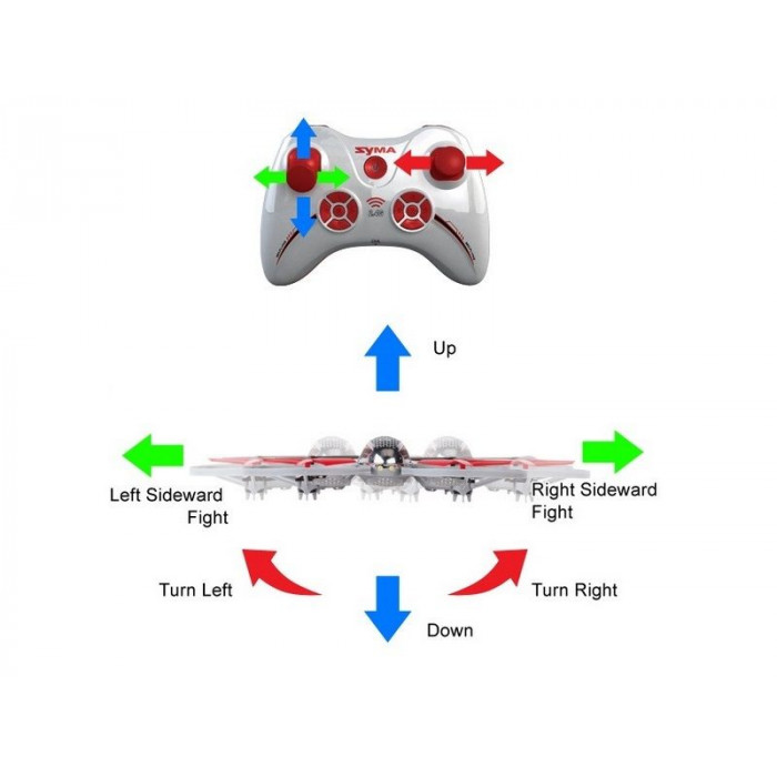 Он может летать в помещении и на открытом воздухе при не сильном ветре. Способен двигаться во всех направлениях полета: вверх/вниз, вперед/назад, влево/вправо, вращение. Кроме обычных летающих движений, Syma X4 способен выполнять переворот на 360 градусов.
