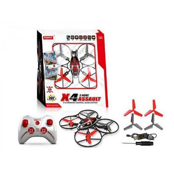 4-канальный квадрокоптер X4 Assault от Syma. Легкий вес, прочная и эластичная защита пропеллеров, простота управления и устойчивость к повреждениям.
