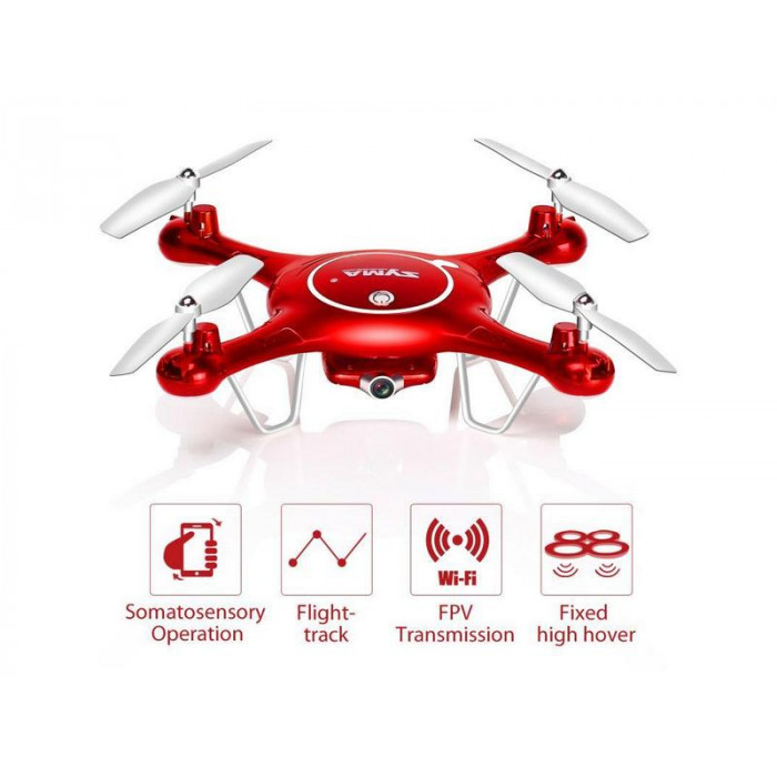 Р/У квадрокоптер Syma X5UW с FPV трансляцией Wi-Fi (HD), барометр 2.4G RTF красный