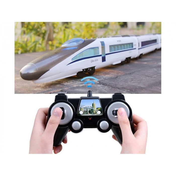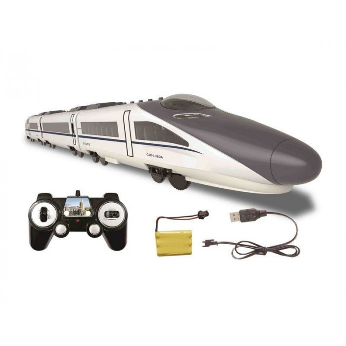 Отличный поезд CRH Train с высокой детализацией деталей в масштабе 1:18. Модель оснащена звуковыми модулями, которые воспроизводят звуки подвижного состава (движение поезда, предупредительные гудки, работа компрессора, стук сцепки и пр.). Управление производится с помощью удобного пульта управления, также с его помощью Вы можете открыть/закрыть дверь и объявить остановки (выход).