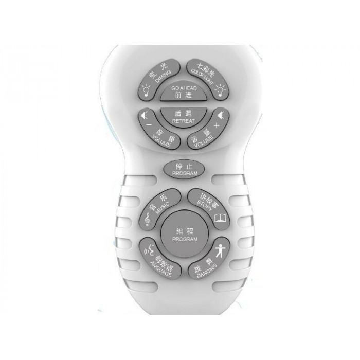 Многофункциональный пульт управления позволяет регулировать яркость световых эффектов, возможность выбора цвета световых эффектов, выбора музыкального сопровождения, выбора языка, уменьшение/увеличение громкости звука, включение танца, включение историй.