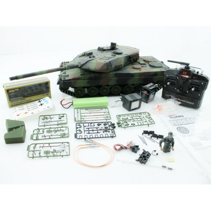 Радиоуправляемый танк Taigen Leopard 2 A6 в масштабе 1:16 с пневматической пушкой, дымовыми и звуковыми эффектами от компании Taigen - полностью функциональная модель, имеющая высокий уровень детализации и металлические компоненты.