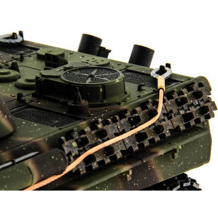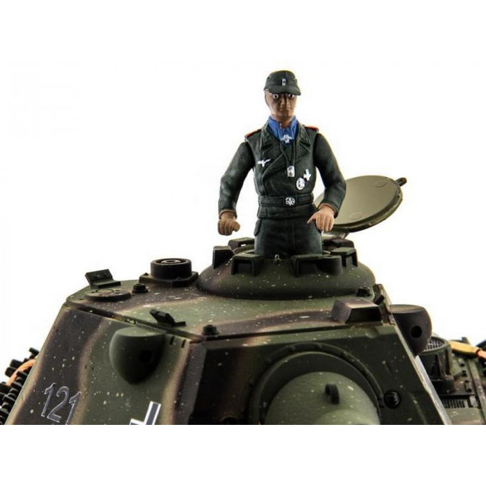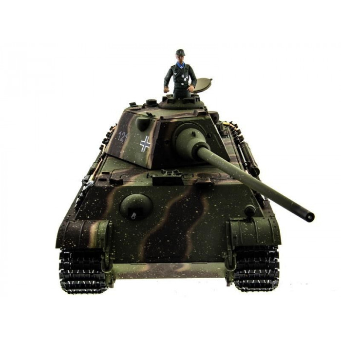 Эта новая обновленная версия поставляется с аппаратурой управления 2,4 ГГц, которая имеет много преимуществ - расширенный диапазон, защита от помех и точность рулевого управления. Еще одна очень полезная функция - звук на этой машине. Звуковой генератор имеет 2 канала и может выдавать 2 звука одновременно - звук стрельбы и звук двигателя. Генератор дыма (дым из глушителя) добавляет реализм танку Panther type F.