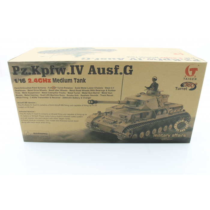 Радиоуправляемый танк Taigen Panzerkampfwagen IV Ausf.F2.Sd.Kfz в масштабе 1:16 с пневматической пушкой, дымовыми и звуковыми эффектами от компании Taigen - полностью функциональная модель, имеющая высокий уровень детализации и металлические компоненты.