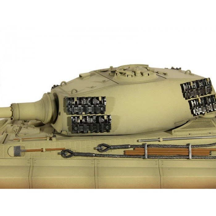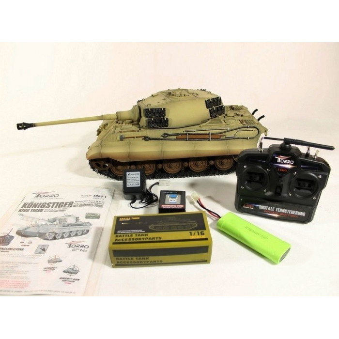 Радиоуправляемый танк Torro King Tiger (Королевский тигр с башней типа «Хеншель») в масштабе 1:16 с инфракрасной пушкой, дымовыми и звуковыми эффектами. Полностью функциональная модель, имеющая высокий уровень детализации и металлические компоненты.