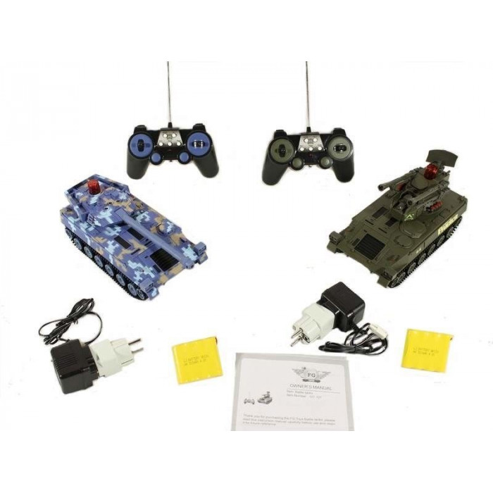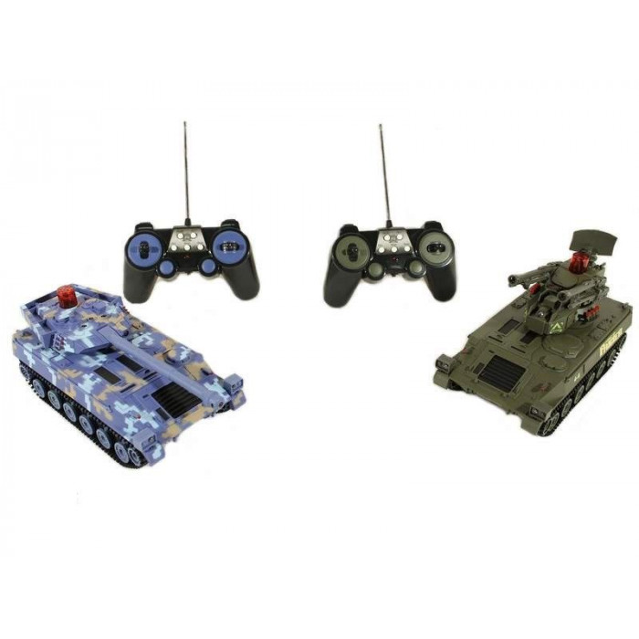 Набор из двух радиоуправляемых танков. У этих танков не только великолепный внешний вид, но и отличные технические характеристики. Танки способны быстро передвигаться, маневрировать, обходить препятствия и засады врага. Оснащены реалистичными звуковыми и световыми эффектами.