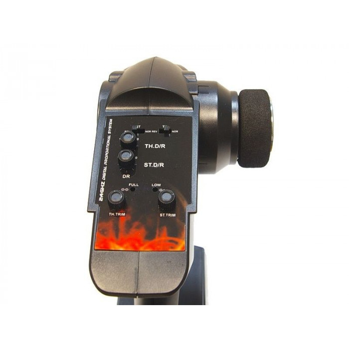 Радиоаппаратура модели представляет из себя установленный 4-х канальный приёмник и 2-х канальный передатчик, частотой 2,4ГГц. Передатчик отличается малыми габаритами и простотой. В то время как большинству систем требуется 8 элементов питания, данный обходится 4-мя. Встроенная в корпус антенна не сломается при переноске, а органы настройки удобно расположены вверху, на видном месте. Помимо привычных настроек, имеется регулировка хода рычага и переключатель мощности частоты. Зарядка аккумуляторов передатчика производится с помощью подключаемого адаптера напряжением 6В (опционно).