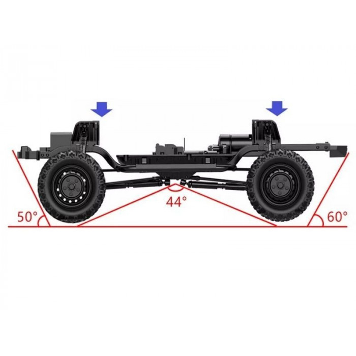 Металлическая рама, мосты, прочное шасси, адаптированное к различным дорожным условиям обеспечивают непревзойденную надежность модели. Тонкая настройка рулевого управления обеспечивает более реалистичное управление. Управление газом точно имитирует работу дроссельной заслонки, также реализована двухскоростная коробка передач для движения автомобиля с высокой и низкой скоростью.