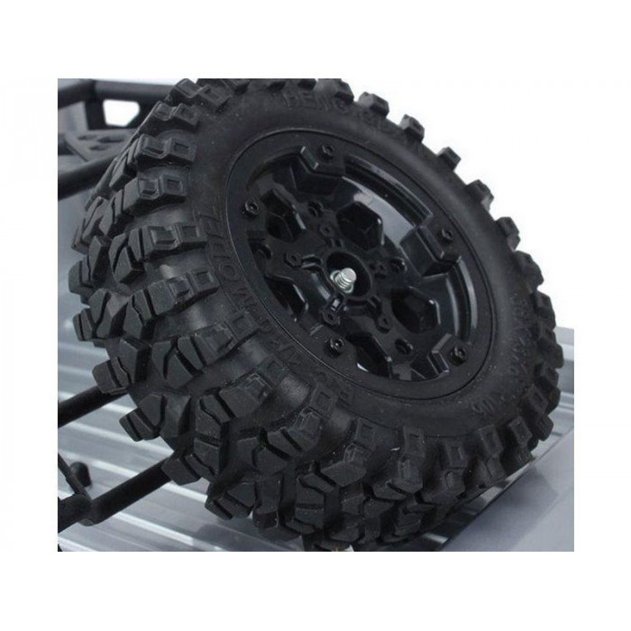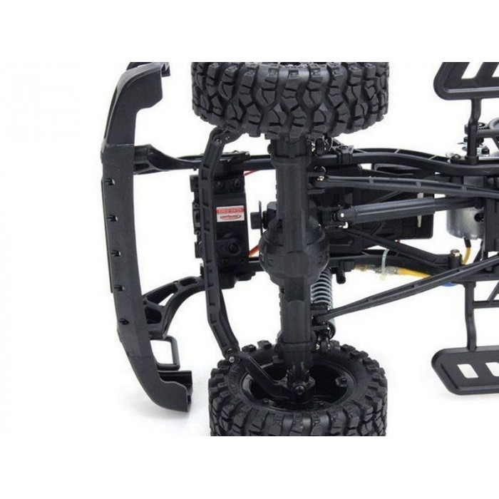 Несущие элементы шасси (подвеска, трансмиссия) сделаны из композитного состава, рама - металлическая. А декоративные (бампера, подножки, стойки кузова, батарейный отсек) из обычного пластика. На шасси предусмотрена возможность установки светодиодов в передний и задний бампер, а так же в «люстру» кабины.