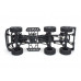 Валы коробки передач установлены на подшипники, вал шестерни главной передачи на втулках. Шестерни КПП изготовлены из алюминиевого сплава. Валы переднего и заднего моста установлены на втулках. Мосты заблокированы, без дифференциалов. Редукторы мостов двухступенчатые с проходным ведущим валом. Такая конструкция позволяет использовать его как промежуточный мост (можно собрать модель с пятью мостами).